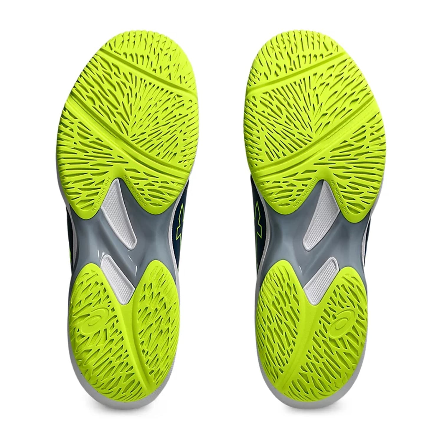 The Asics Solution Swift FF2 Tennis Shoes (Mako Blue/Safety Yellow) is designed for all-court players covering the net and baseline. It features a flexible sole design that’s functional for multi-directional movements.