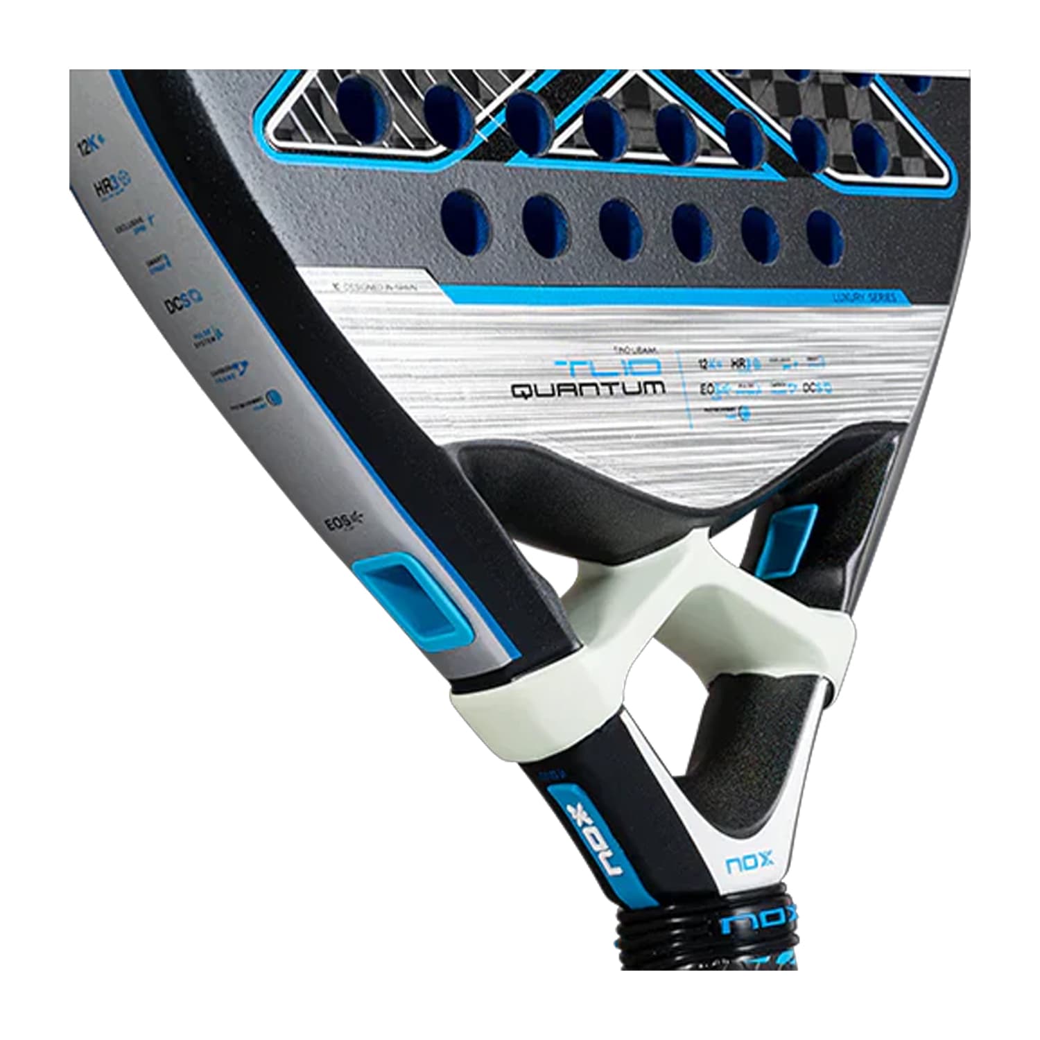 Elevate your game with the NOX TL10 Quantum 12K 2025, co-designed by Tino Libaak. Featuring a teardrop shape, 12K carbon face, and HR3 Color EVA core, it offers a perfect balance of power and control. Innovative technologies like EOS Flap and EXCLUSIVE SPIN enhance maneuverability and spin potential.